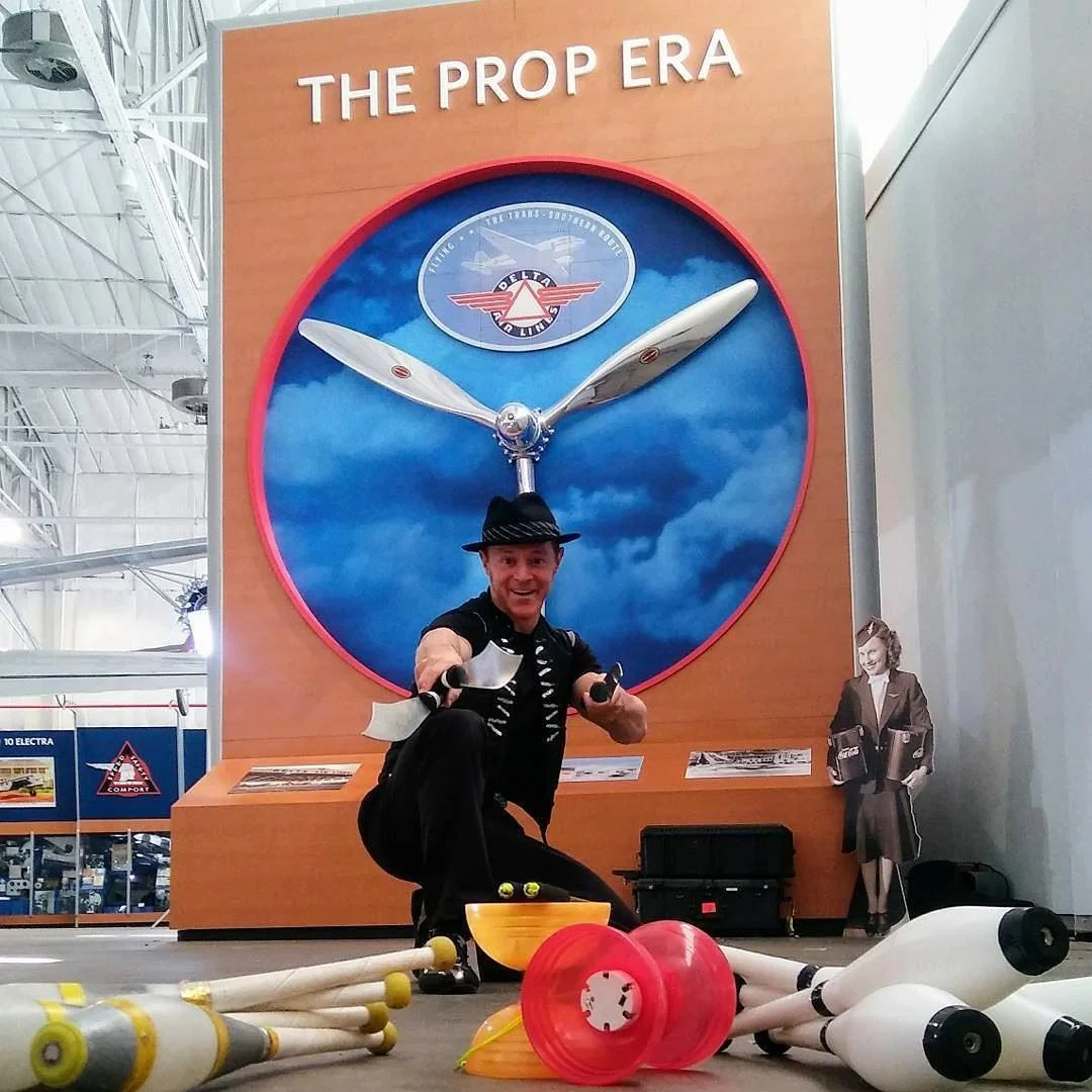 Juggling is a great skill for ambient entertainment.  Rocco can juggle clubs, balls, Diabolo (large yo-yos that can be thrown and caught off of the string), and machetes.  Low light at your venue?  Rocco has high-intensity LED juggling props.  Want to make your event extra special?  At client's request (in advance) Rocco can balance or juggle something from any venue.  Folding chairs, recliners, cucumbers, shoes, hats, walking sticks, fire torches, water bottles, test tube beakers, and 12 foot ladders have all been items Rocco has juggled professionally.
